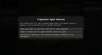 Explore the space in search for a place to live. Face humanity challenges by making crucial decisions.